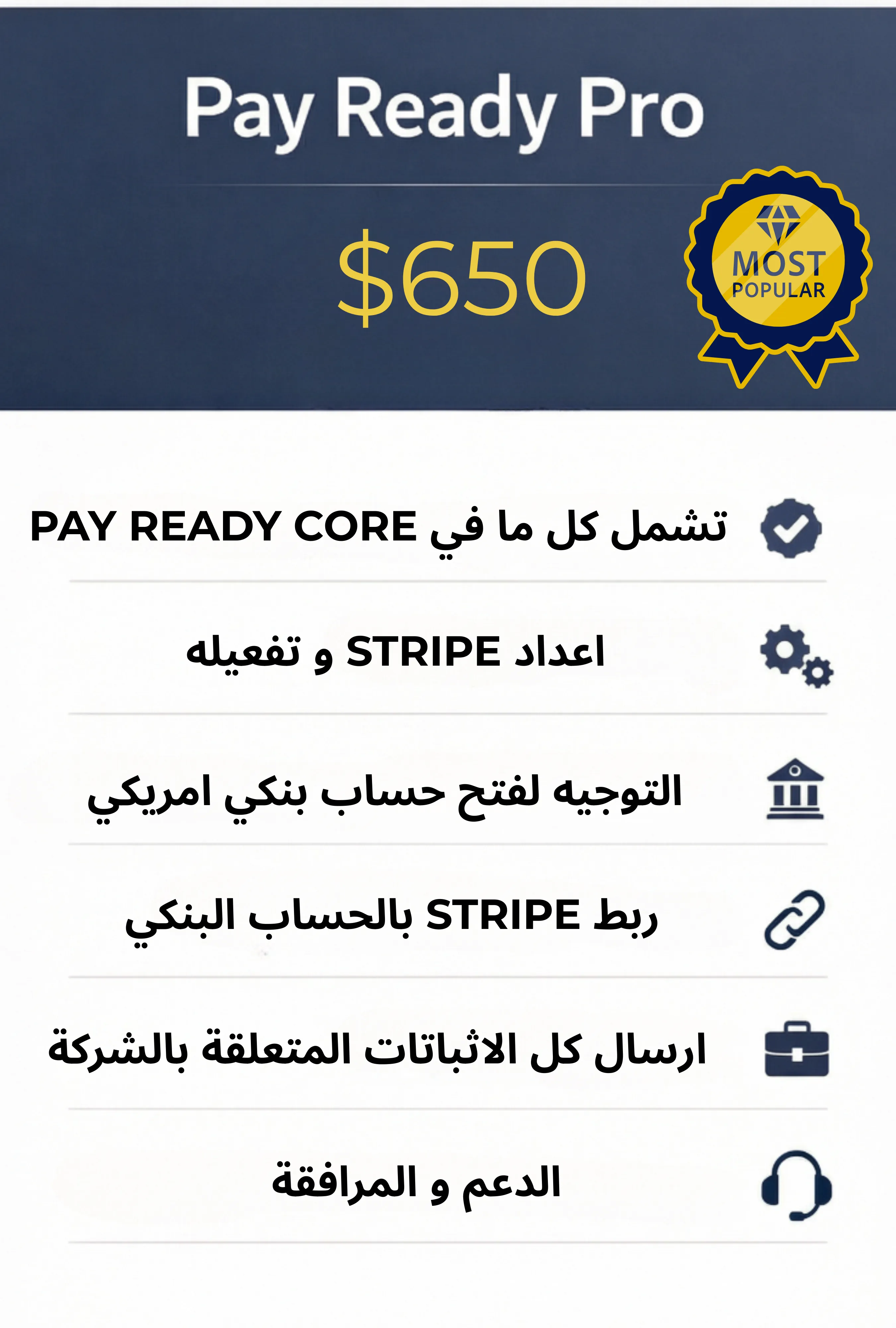 ✔️ هيكل جاهز للعمل مع Stripe وPayPal والبنوك الأمريكية